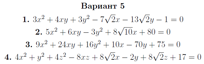 ДЗ 1.2: Кривые и поверхности второго порядка вариант 5