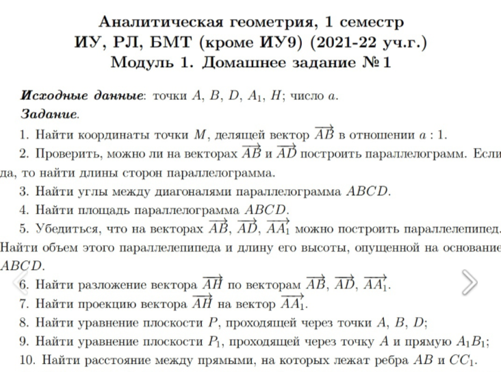 ДЗ 1: Векторная алгебра и аналитическая геометрия вариант 7