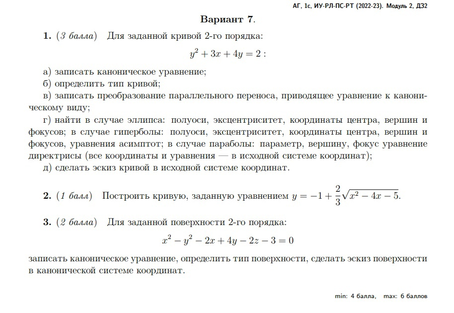 ДЗ 2: Кривые и поверхности второго порядка вариант 7