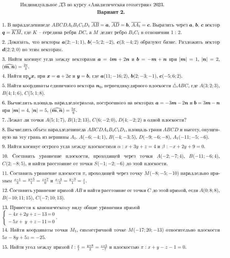 ДЗ 1: Векторная алгебра и аналитическая геометрия вариант 2