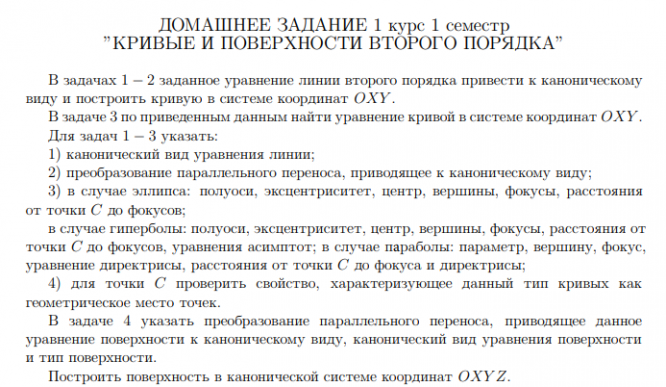 МГТУ им Н.Э Баумана. Бауманка. Бомонка. ДЗ ангем. ангеом. Вариант 3. ДЗ1. ДЗ_1. ДЗ 1. ДЗ2. ДЗ_2. ДЗ 2. СМ. РК4. ИУ10. ДЗ1 решение готовое, фото, условие.”Векторная алгебра и аналитическая геометрия” CM,ФН 1 курс 1 семестр Домашнее задание. ДЗ1. ДЗ1.1. ДЗ1.2. ДЗ_1.1. ДЗ_1.2. ДЗ_1. ДОМАШНЕЕ ЗАДАНИЕ 1 курс 1 семестр ”КРИВЫЕ И ПОВЕРХНОСТИ ВТОРОГО ПОРЯДКА” В задачах 1 − 2 заданное уравнение линии второго порядка привести к каноническому виду и построить кривую в системе координат OXY . В задаче 3 по приведенным данным найти уравнение кривой в системе координат OXY . Для задач 1 − 3 указать: 1) канонический вид уравнения линии; 2) преобразование параллельного переноса, приводящее к каноническому виду; 3) в случае эллипса: полуоси, эксцентриситет, центр, вершины, фокусы, расстояния от точки C до фокусов; в случае гиперболы: полуоси, эксцентриситет, центр, вершины, фокусы, расстояния от точки C до фокусов, уравнения асимптот; в случае параболы: параметр, вершину, фокус, уравнение директрисы, расстояния от точки C до фокуса и директрисы; 4) для точки C проверить свойство, характеризующее данный тип кривых как геометрическое место точек.