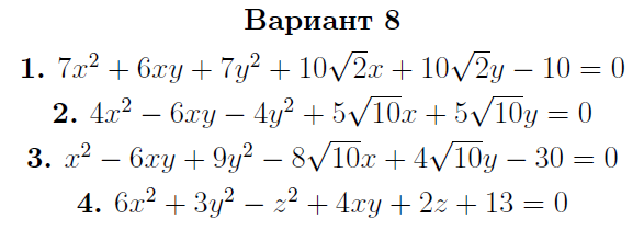 ДЗ 1.2: Кривые и поверхности второго порядка вариант 8