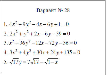 ДЗ 2.1: Кривые второго порядка вариант 28