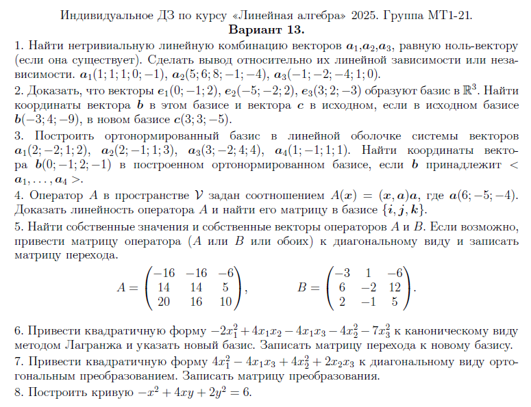 Домашнее задание №1 по Линейной алгебре 13 вариант для МТ 2025 года принятое самим господином Леванковым ![]()