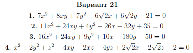 ДЗ 1.2: Кривые и поверхности второго порядка вариант 21