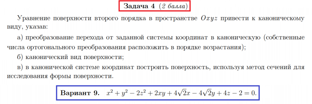 ДЗ 1: Линейная алгебра вариант 9