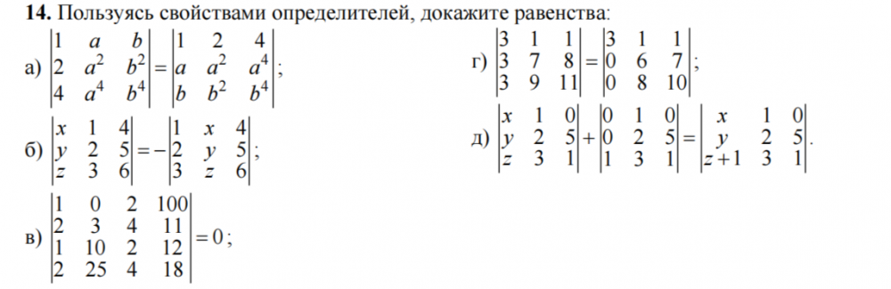 Задачи по теме 2 "Определители. Задачи 14-19" для студентов технических направлений ЮУрГУ, 1 семестр.