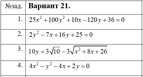 ДЗ 2.1: Кривые второго порядка вариант 21