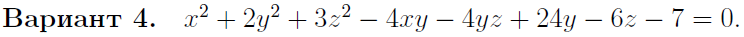 • Задача 4. Уравнение поверхности второго порядка на плоскости Oxyz привести к каноническому виду, указав: