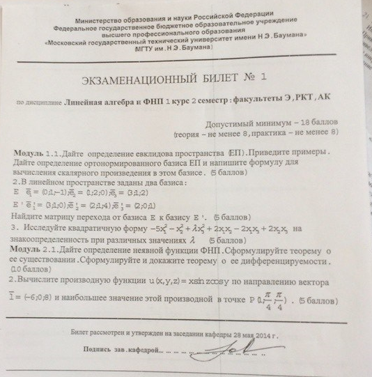 Для студентов МГТУ им. Н.Э.Баумана по предмету Линейная алгебра и аналитическая геометрияБилеты 2014Билеты 2014 2015-05-08СтудИзба