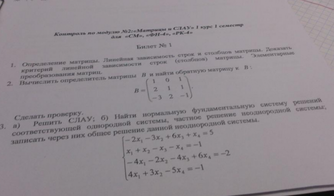 Вопросы/задания к контрольной работе: Билеты к РК №2 "Матрицы и СЛАУ"