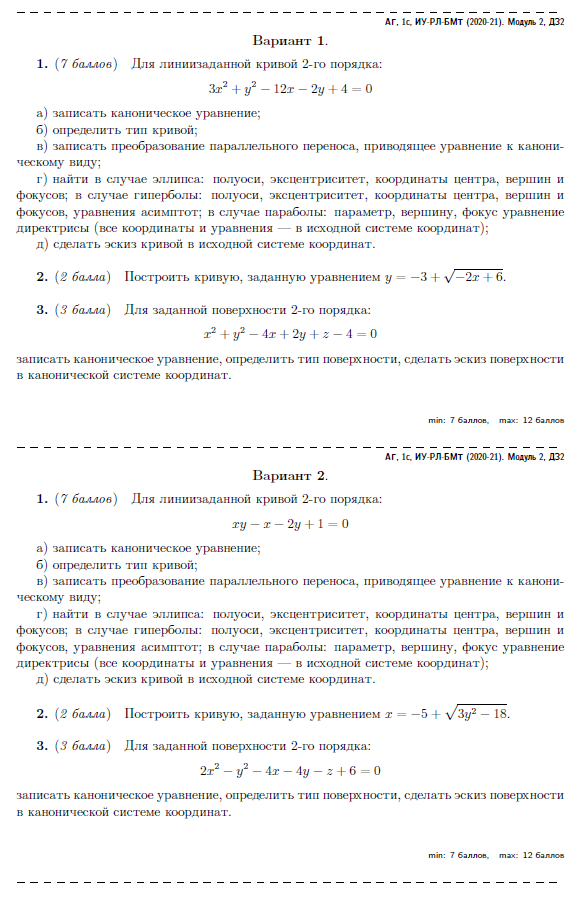 Для студентов МГТУ им. Н.Э.Баумана по предмету Линейная алгебра и аналитическая геометрияКривые и поверхности второго порядкаКривые и поверхности второго порядка