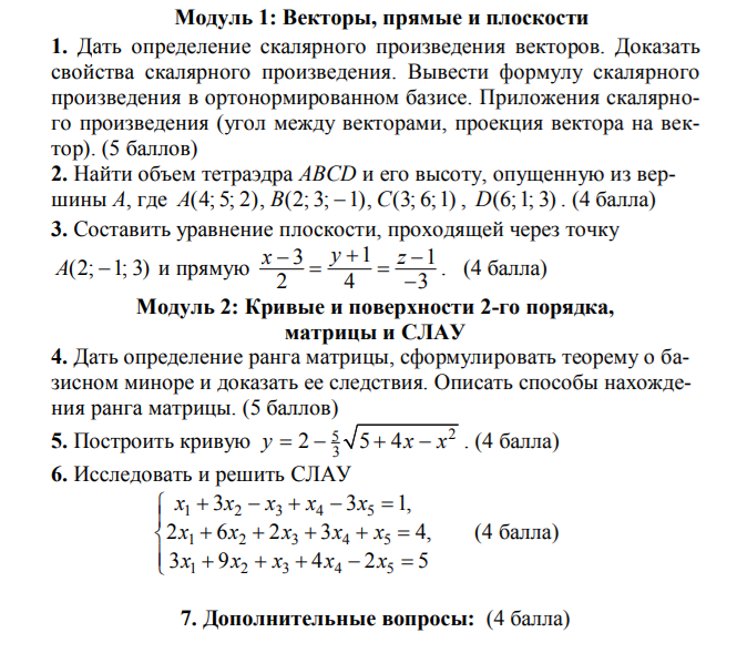 Для студентов МГТУ им. Н.Э.Баумана по предмету Линейная алгебра и аналитическая геометрияБилеты к экзамену для МТ и Э5 (без решения)Билеты к экзамену для МТ и Э5 (без решения)