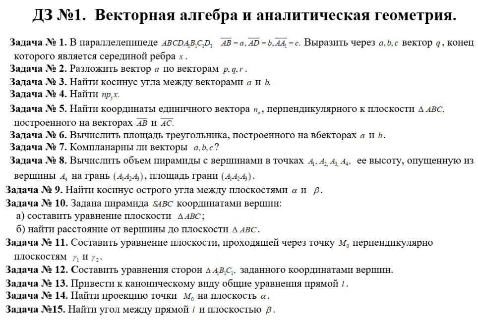 Вопросы/задания к заданиям 1: Векторная алгебра и аналитическая геометрия