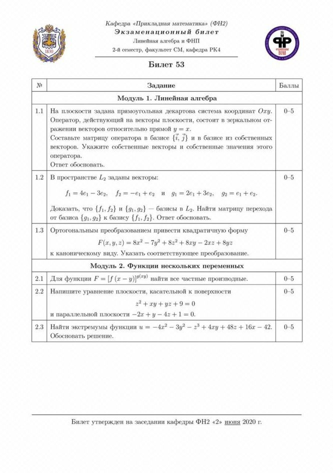 Для студентов МГТУ им. Н.Э.Баумана по предмету Линейная алгебра и аналитическая геометрияРешение экзаменационного билета по Линейной алгебре и ФНПРешение экзаменационного билета по Линейной алгебре и ФНП