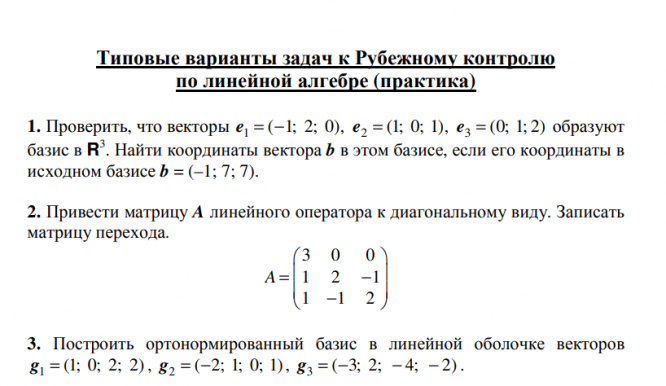 Вопросы/задания к контрольной работе: Типовые задания практической части рубежного контроля по линейной алгебре