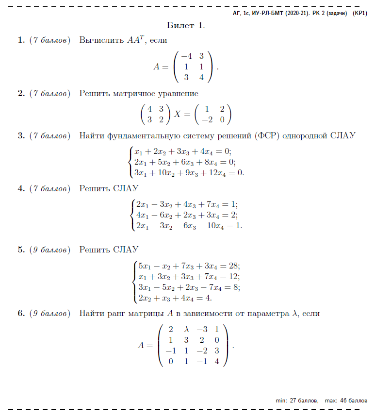Для студентов МГТУ им. Н.Э.Баумана по предмету Линейная алгебра и аналитическая геометрияРК2 все билеты с задачами и теорией 2020-2021г.РК2 все билеты с задачами и теорией 2020-2021г.