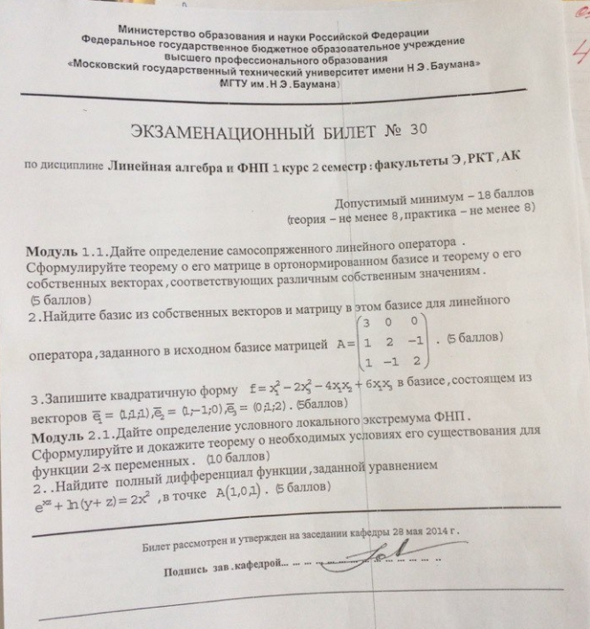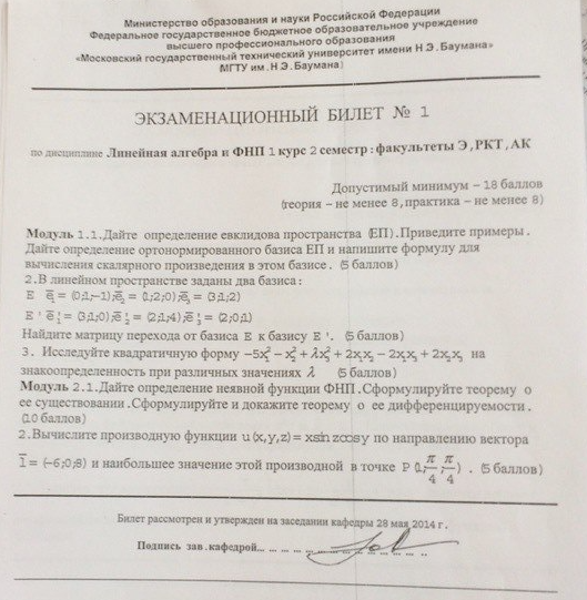 Для студентов МГТУ им. Н.Э.Баумана по предмету Линейная алгебра и аналитическая геометрияЭкзаменационные билеты по дисциплине Линейная алгебра и ФНПЭкзаменационные билеты по дисциплине Линейная алгебра и ФНП 2023-05-01СтудИзба
