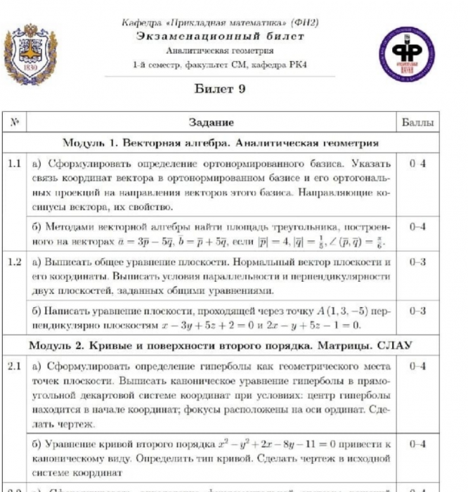Для студентов МГТУ им. Н.Э.Баумана по предмету Линейная алгебра и аналитическая геометрияБилетыБилеты 2023-07-16СтудИзба