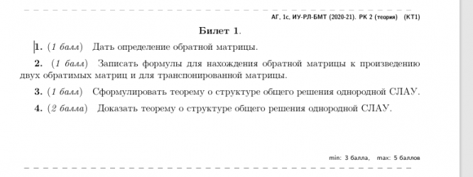 Для студентов МГТУ им. Н.Э.Баумана по предмету Линейная алгебра и аналитическая геометрияБилеты РК №2Билеты РК №2 2024-02-16СтудИзба