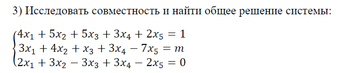Задача 3: m=10. Исследовать совместность и найти общее решение системы.