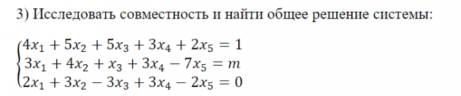 Для студентов СВГУ по предмету Линейная алгебра и аналитическая геометрияm=10. Исследовать совместность и найти общее решение системы.m=10. Исследовать совместность и найти общее решение системы.