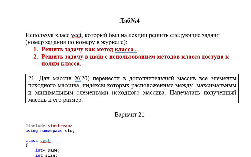 В файле представлено описание задания, перечень вариантов и код решения одного из вариантов задания (21 вариант) на языке С++.
