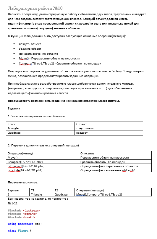 В файле представлено описание задания, перечень вариантов и код решения одного из вариантов задания (21 вариант) на языке С++.