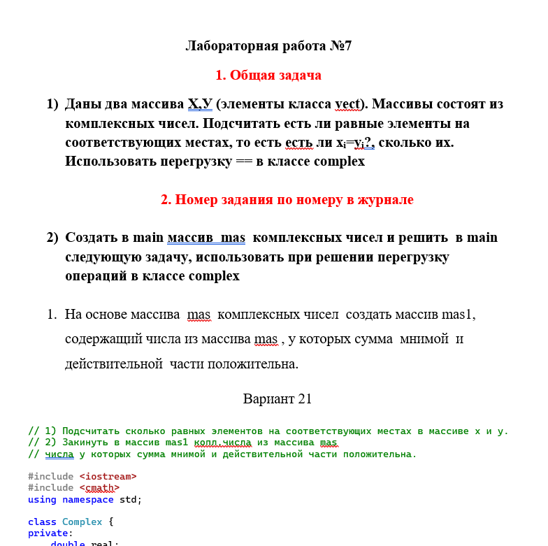 В файле представлено описание задания, перечень вариантов и код решения одного из вариантов задания (21 вариант) на языке С++.