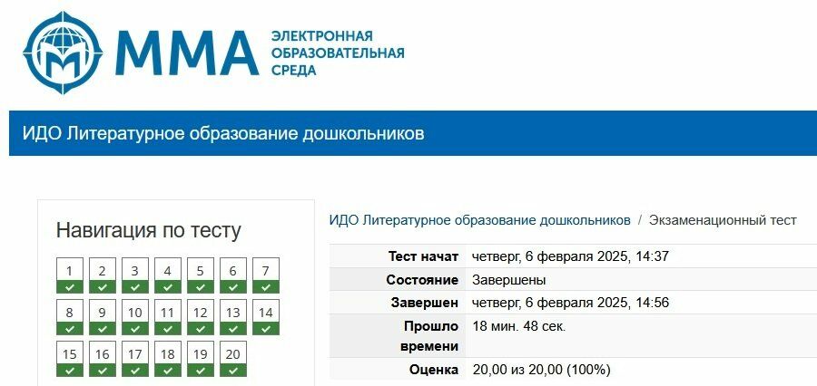 Сборник ответов к экзаменационному тесту Литературное образование дошкольников ММА.