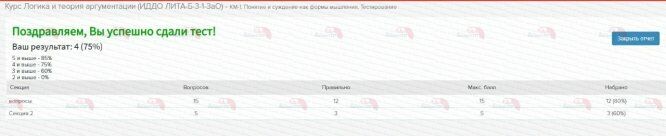 Курс Логика - КМ-1. Понятие и суждение как формы мышления. Тестирование - 75%