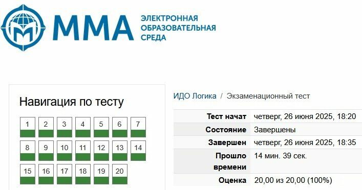 Сборник ответов к экзаменационному тесту Логика ММА.