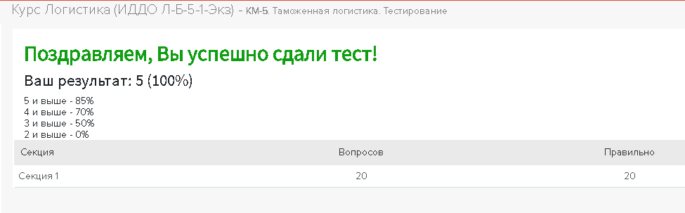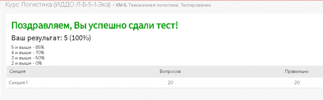 Ответы к контрольной работе: КМ-5. Таможенная логистика. Тестирование