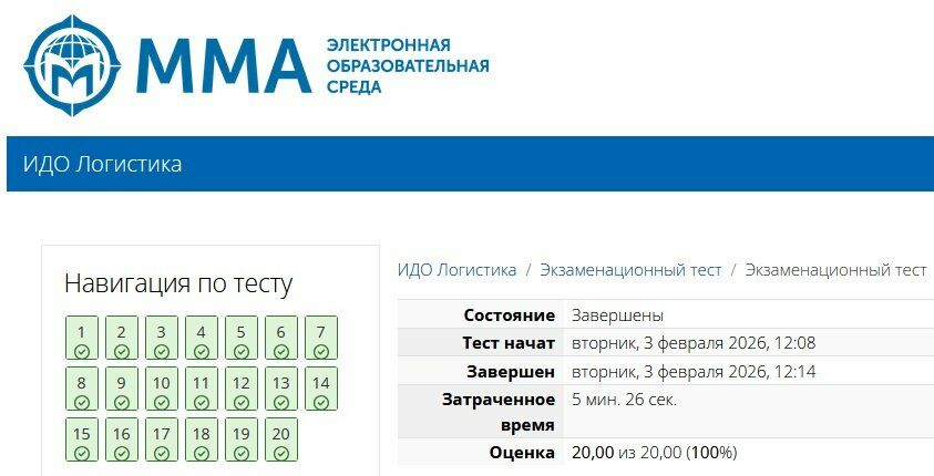 Сборник ответов к экзаменационному тесту Логистика ММА.