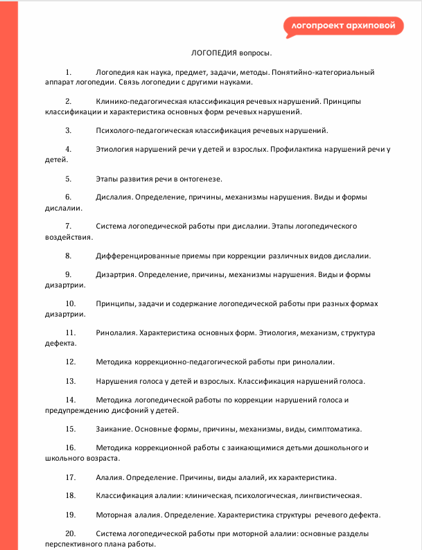 Ответы к экзамену: Успешная сдача экзамена по логопедии