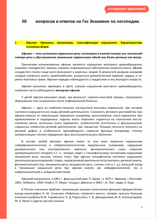 Второй файл содержит 50 вопросов и ответов на ГосЭкзамене по логопедии.