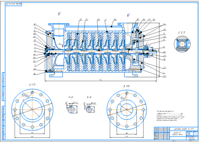Для студентов МГТУ им. Н.Э.Баумана по предмету Лопастные гидромашиныВосьмиступенчатый центробежный насосВосьмиступенчатый центробежный насос