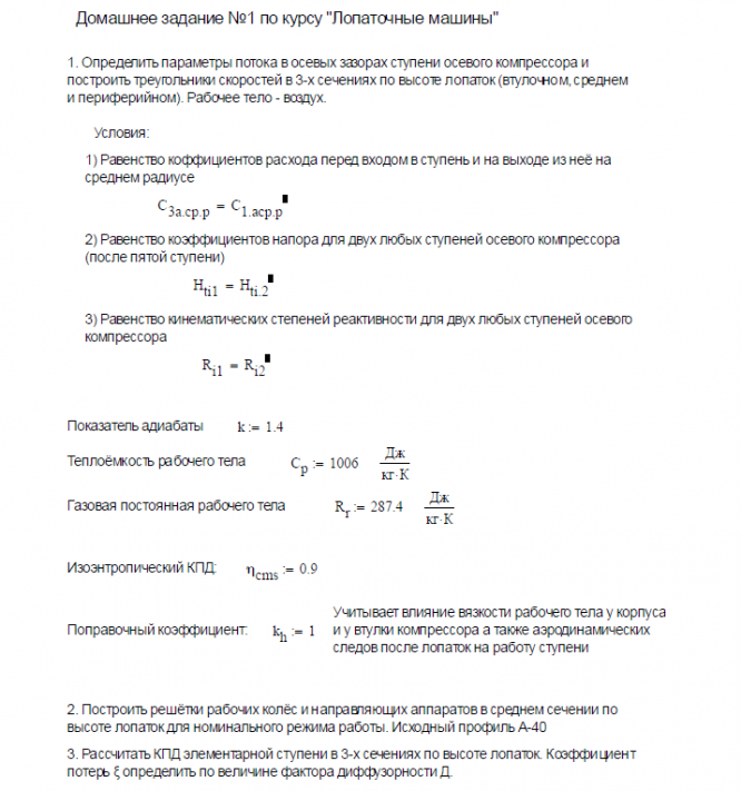Для студентов МГТУ им. Н.Э.Баумана по предмету Лопаточные машиныДомашнее заданиеДомашнее задание