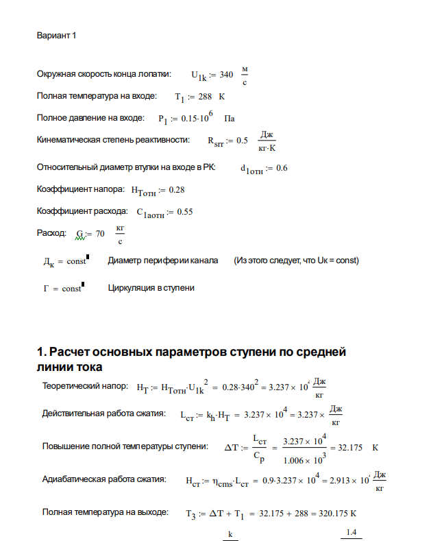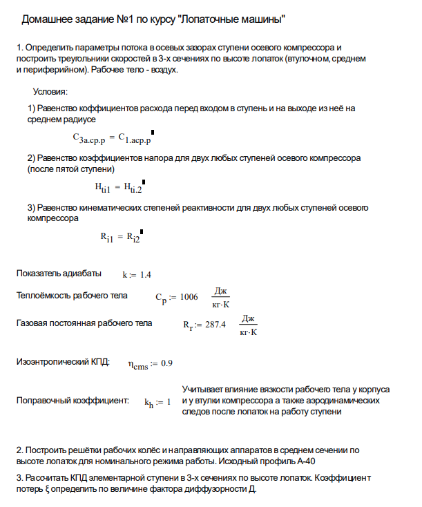Для студентов МГТУ им. Н.Э.Баумана по предмету Лопаточные машиныДомашнее задание №1 (Вариант 1)Домашнее задание №1 (Вариант 1)