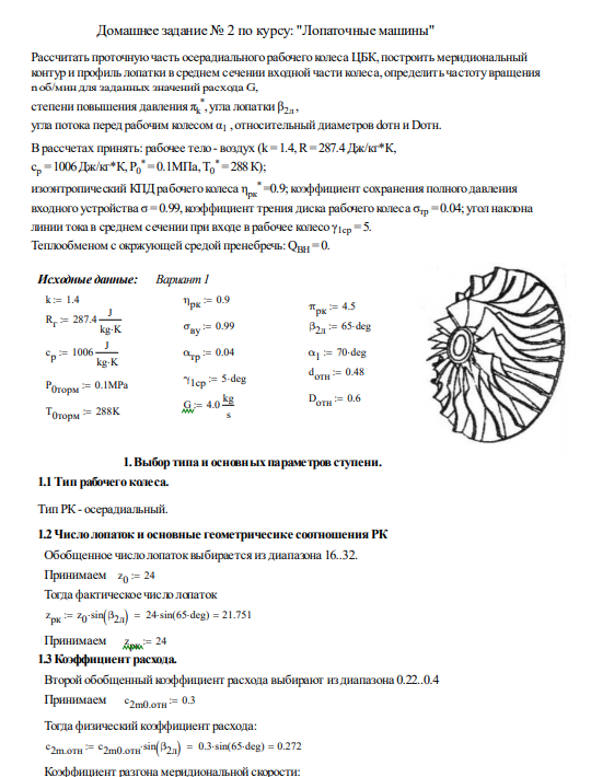 Для студентов МГТУ им. Н.Э.Баумана по предмету Лопаточные машиныДомашнее задание №2 (Вариант 1)Домашнее задание №2 (Вариант 1)