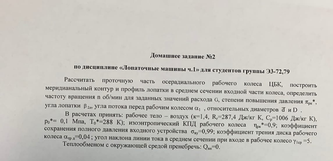 ДЗ: Вариант 2. Домашнее задание N-2 По Лопаточным машинам вариант 2