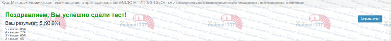 Для студентов ИДДО НИУ «МЭИ» по предмету Макроэкономическое планирование и прогнозированиеМакроэкономическое планирование и прогнозирование - КМ-2. Современная модель макроэкономического планирования и прогнозирования. ТестированиеМакроэкономическое планирование и прогнозирование - КМ-2. Современная модель макроэкономического планирования и прогнозирования. Тестирование