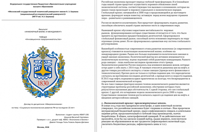 Для студентов МГТУ им. Н.Э.Баумана по предмету МакроэкономикаДоклад на тему Социально-экономическое развитие РФ за последние 10 летДоклад на тему Социально-экономическое развитие РФ за последние 10 лет