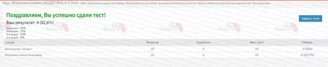 Курс Макроэкономика - КМ-1. Введение в макроэкономику. Измерение результатов экономической деятельности. Общее макроэкономическое равновесие. Тестирование