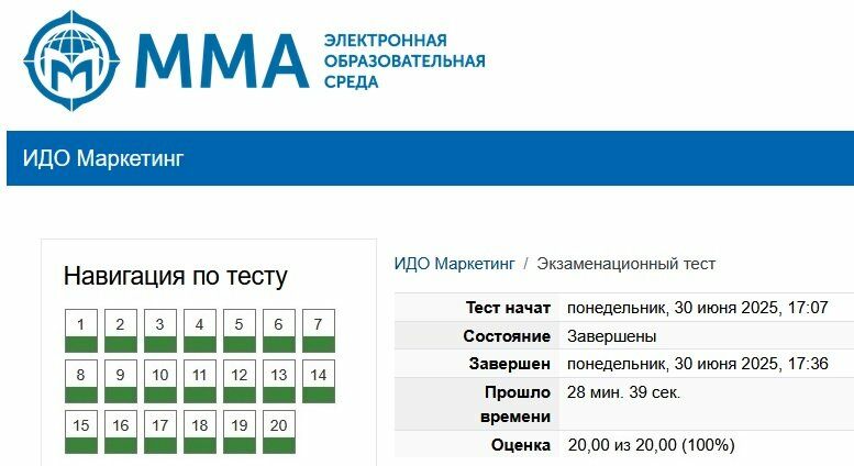 Сборник ответов к экзаменационному тесту Маркетинг ММА.