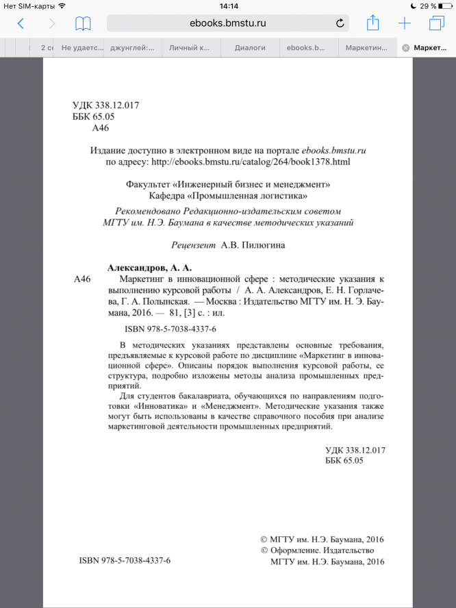 Книга: Методичка "Маркетинг в инновационной сфере"