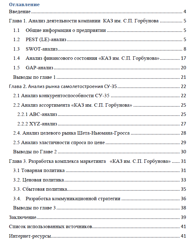 Главная » Учебные материалы » Маркетинг » Курсовые работы » МГТУ им. Н.Э.Баумана » 5 семестр » Формирование комплекса маркетинга на примере Казанского авиационного завода им. С.П.Горбунова