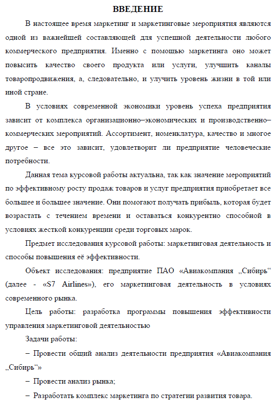 Курсовая работа: Разработка плана маркетинга ПАО Авиакомпания "Сибирь" ("S7 Airlines")