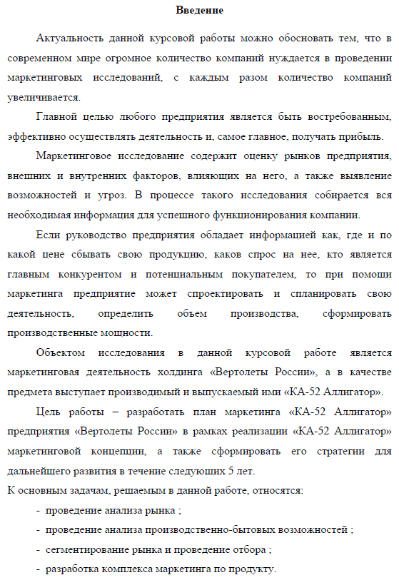 Курсовая работа: Формирование комплекса маркетинга на примере АО "Вертолеты России"