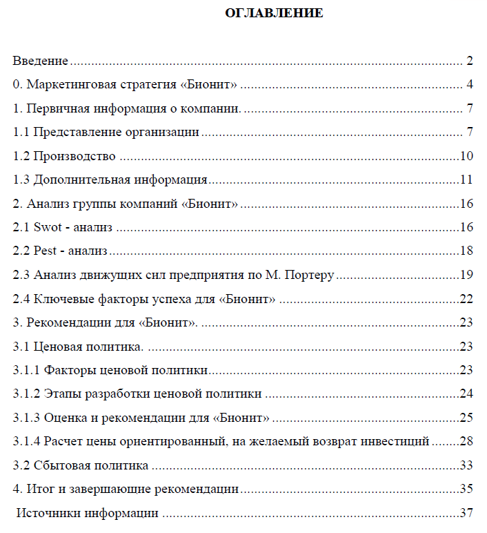 Курсовая работа: Маркетинговая стратегия для групп компаний "Бионит" и рекомендации по ее внедрению